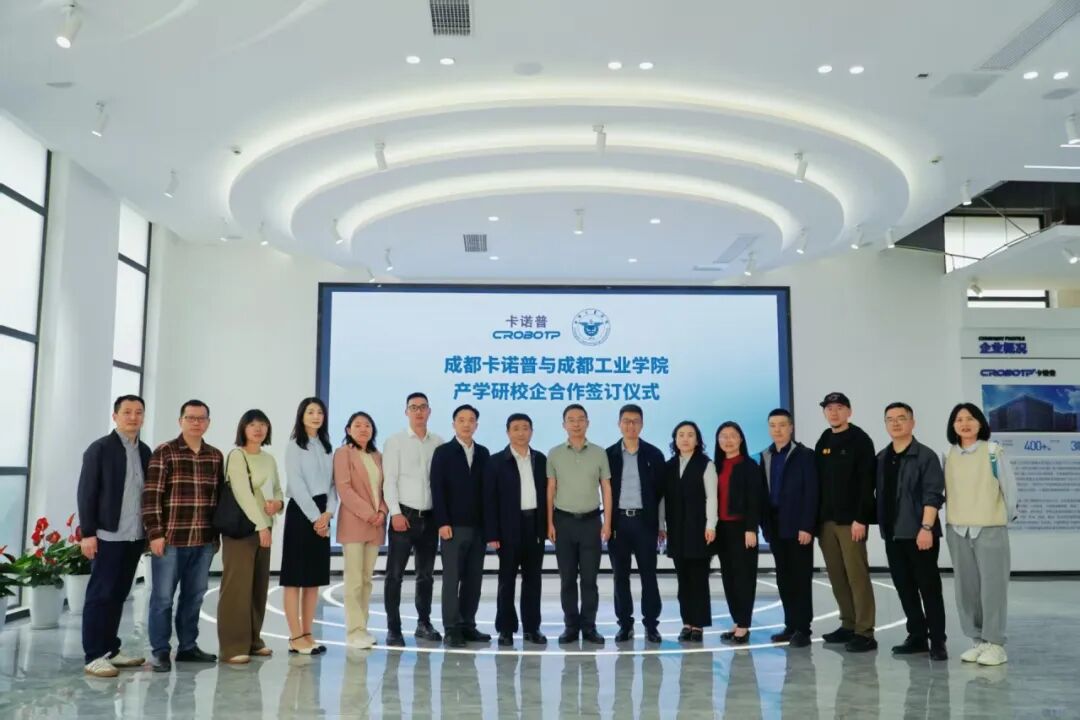 4月16日,成都工业学院校长刘保县带队赴卡诺普机器人技术股份有限公司(以下简称“卡诺普”)签署产学研合作协议,双方围绕人才培养、技术攻关、产教融合等方向展开务实交流。卡诺普总裁兼CTO朱路生参与签订工作,并详细介绍了企业核心技术及产业需求。