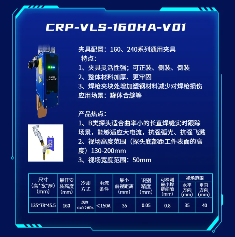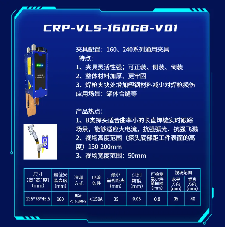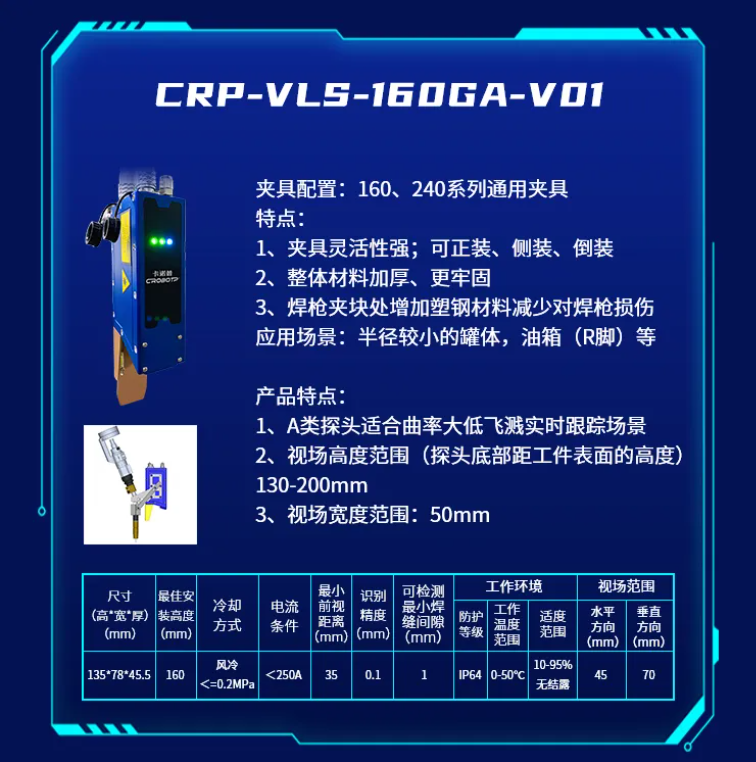 为了适应不同的焊接场景,推出了CRP-VLS-330GB-V01新款机型激光焊缝跟踪器