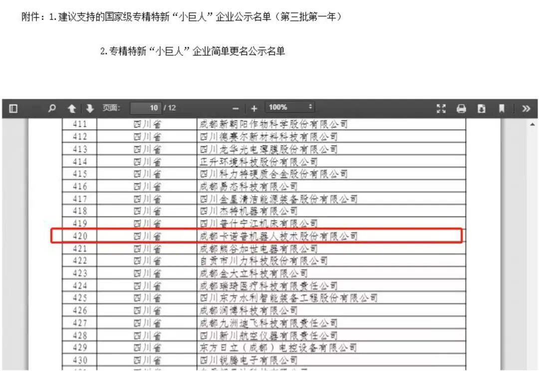 近日,工业和信息化部中小企业局公示了关于建议支持的国家级专精特新重点“小巨人”企业名单(第三批第一年),成都卡诺普机器人技术股份有限公司成功入选。