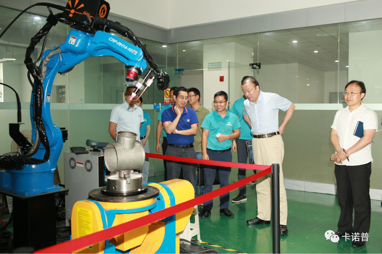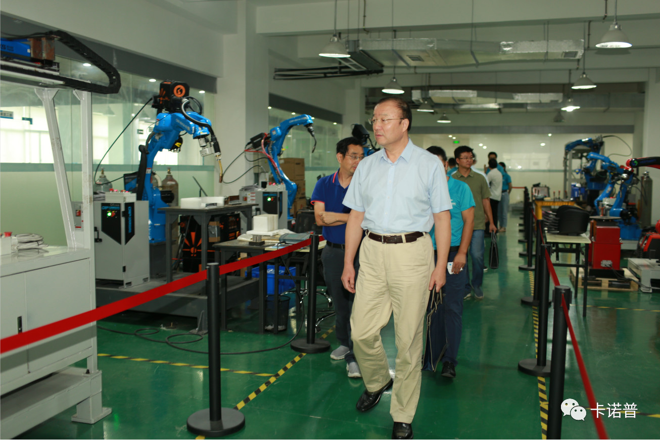 在卡诺普董事长李良军等的陪同下,郝秘书长一行人对卡诺普的发展历史、企业文化建设、科研技术水平及销售市场做了全面了解,并参观了卡诺普机器人核心零部件生产线、技术研发中心和机器人测试中心。