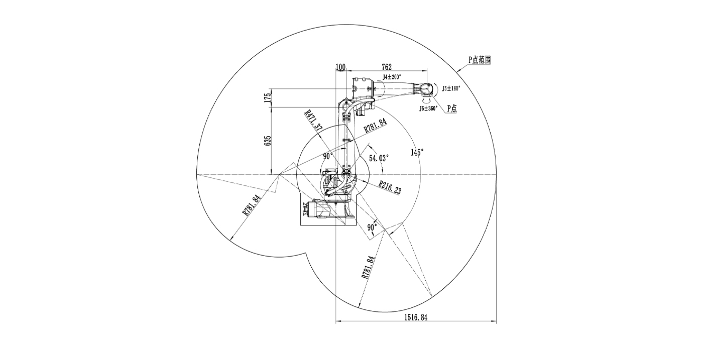 J4、J6轴中空结构设计,直径达57mm,实现外部线缆内置布线,有效减少线缆的干涉,J1轴中空结构,孔径达106mm,实现中空走线,避免外部线缆磨损。