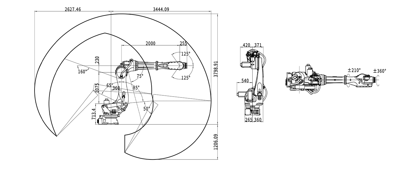 • 本体采中空⼿臂结构与内置⼿腕电缆,⽆需考虑外部缠绕⽅式导致与相邻机器⼈或周边设备相互产⽣的⼲涉。