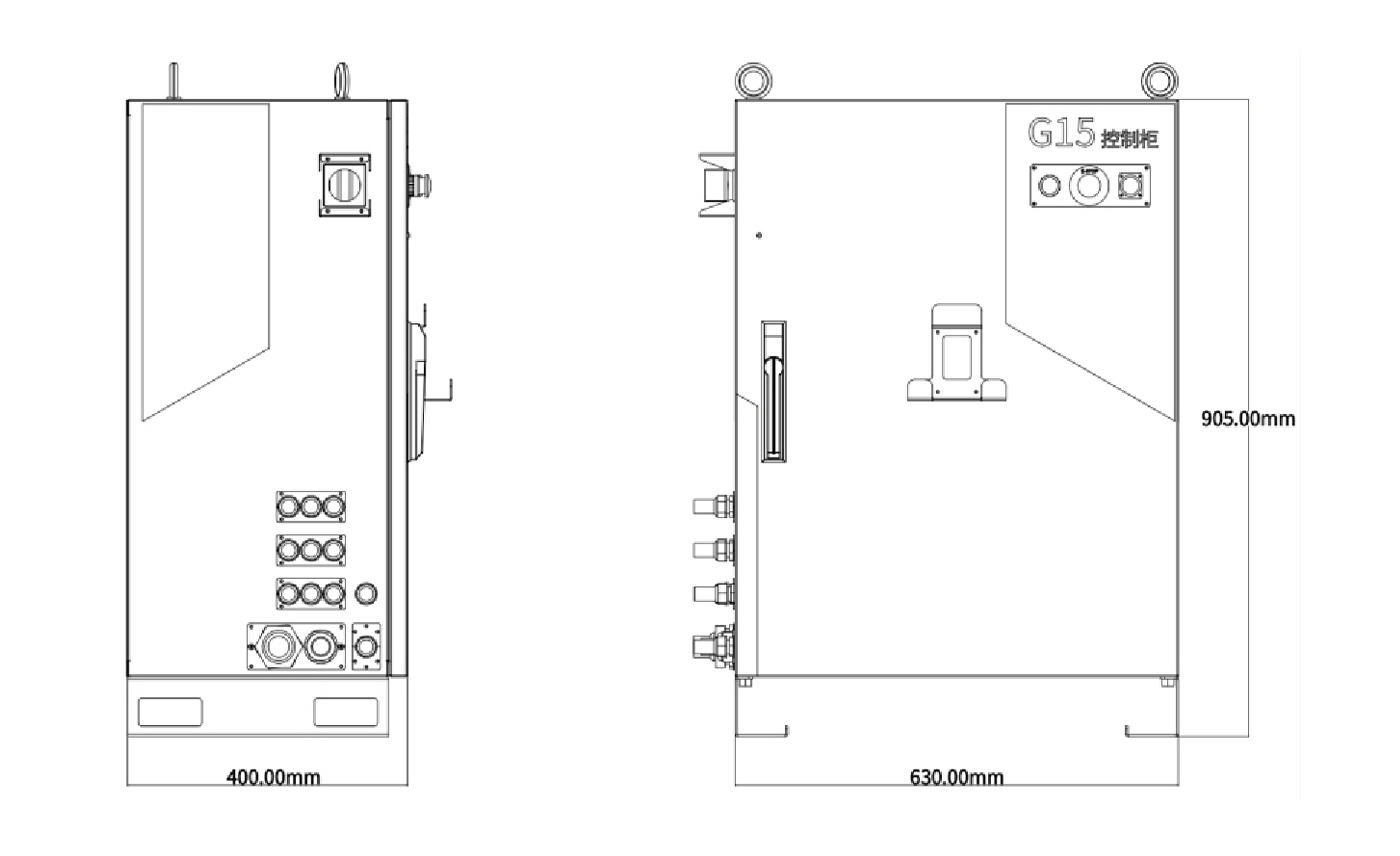 分为电源室和控制室。电源室主要集中发热器件,采⽤多组⻛扇+⻛道设计,保障发热器件良好散热。控制室与电源室隔离,避免粉尘,油污进⼊控制室,保障控制室清洁,避免制室内器件受到粉尘、油污影响导致⼯作异常。