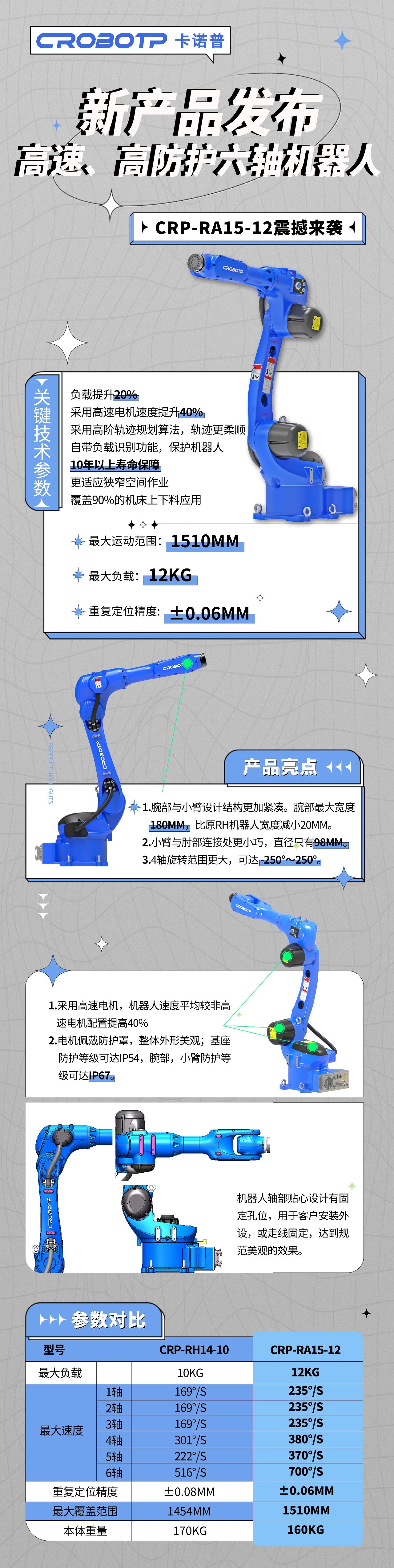 震撼来袭 |卡诺普全新推出高速、高防护六轴机器人CRP-RA15-12