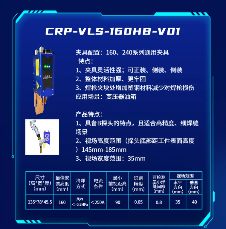 为了适应不同的焊接场景,推出了CRP-VLS-330GB-V01新款机型激光焊缝跟踪器