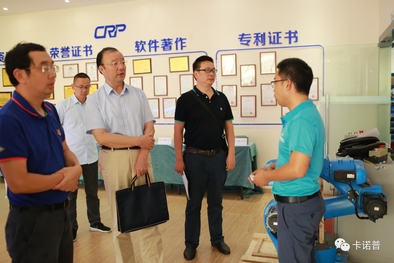 在卡诺普董事长李良军等的陪同下,郝秘书长一行人对卡诺普的发展历史、企业文化建设、科研技术水平及销售市场做了全面了解,并参观了卡诺普机器人核心零部件生产线、技术研发中心和机器人测试中心。