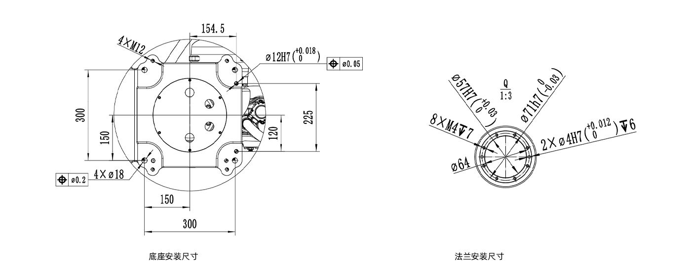• J4、J6轴中空结构设计,直径达57mm,实现外部线缆内置布线,有效减少线缆的干涉,J1轴中空结构,孔径达106mm,实现中空走线,避免外部线缆磨损。