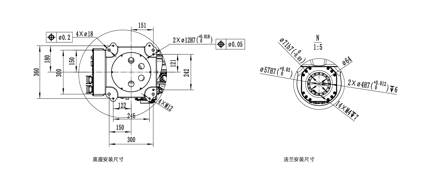 J4、J6轴中空结构设计,直径达57mm,实现外部线缆内置布线,有效减少线缆的干涉,J1轴中空结构,孔径达106mm,实现中空走线,避免外部线缆磨损。