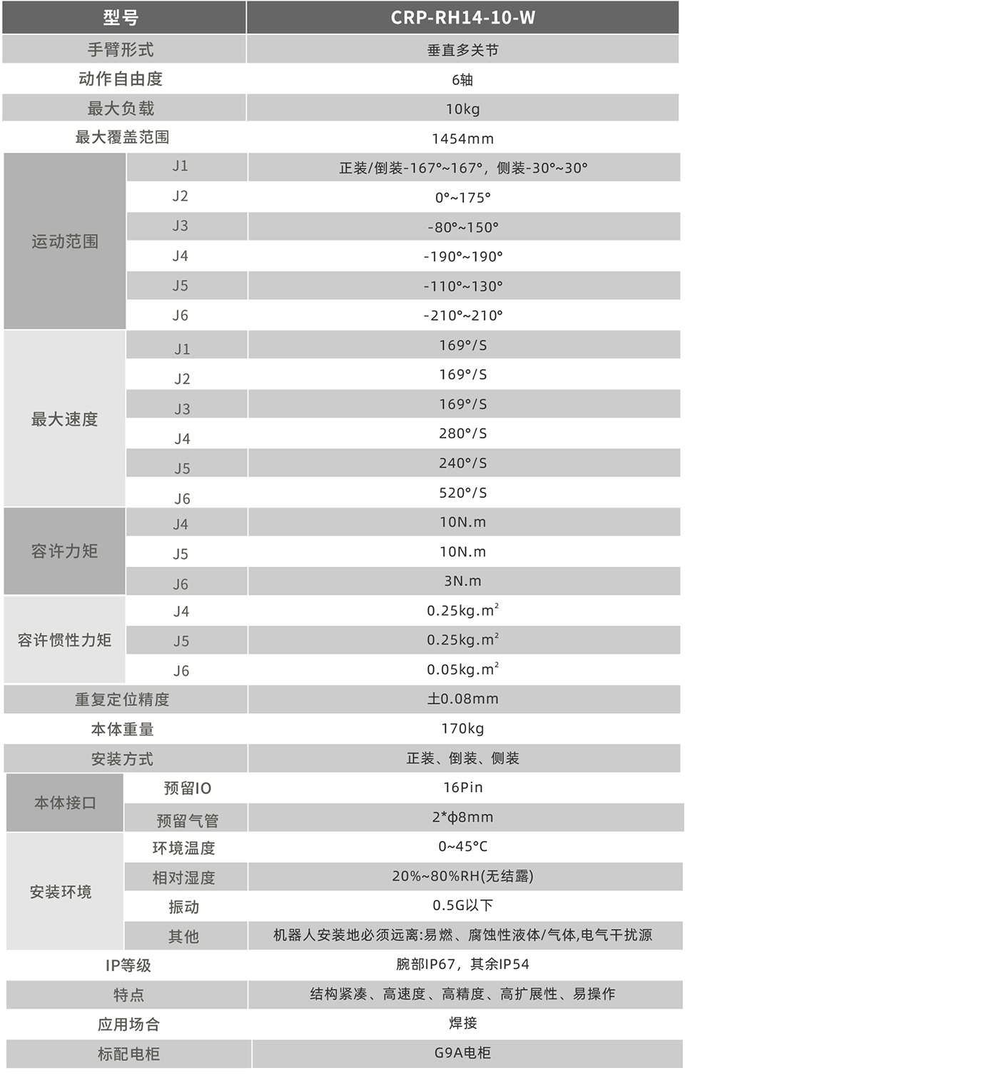 ⼯作空间⼤、运⾏速度快、重复定位精度⾼,适⽤于焊接应⽤,适⽤范围⼴。