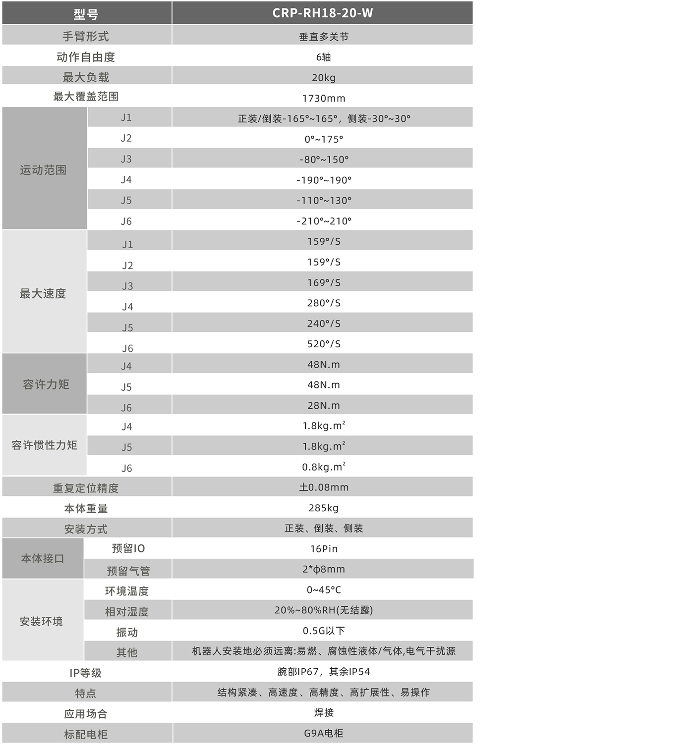 ⼯作空间⼤、运⾏速度快、重复定位精度⾼,适⽤于焊接应⽤,适⽤范围⼴。