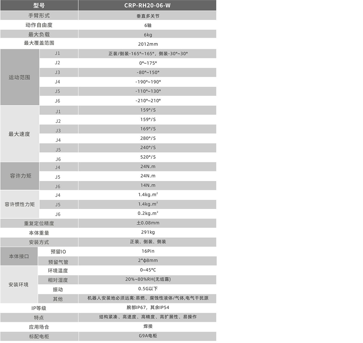 ⼯作空间⼤、运⾏速度快、重复定位精度⾼,适⽤于焊接应⽤,适⽤范围⼴。