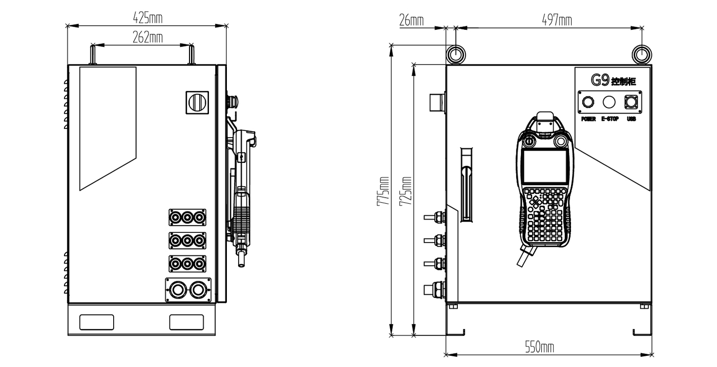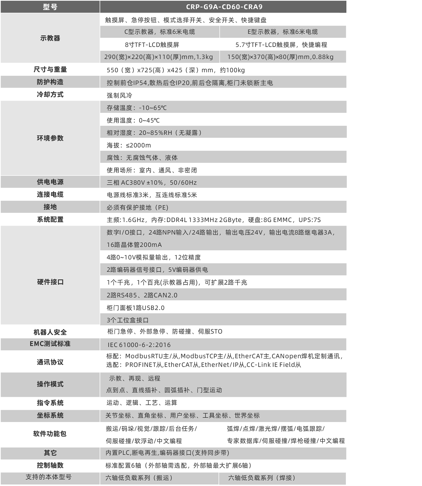 采用进口强制型断开继电器,对外提供双回路急停。任意急停被按下时,强电回路和伺服单元同时紧急处理,强行停止机器人动作,从而实现安全急停。