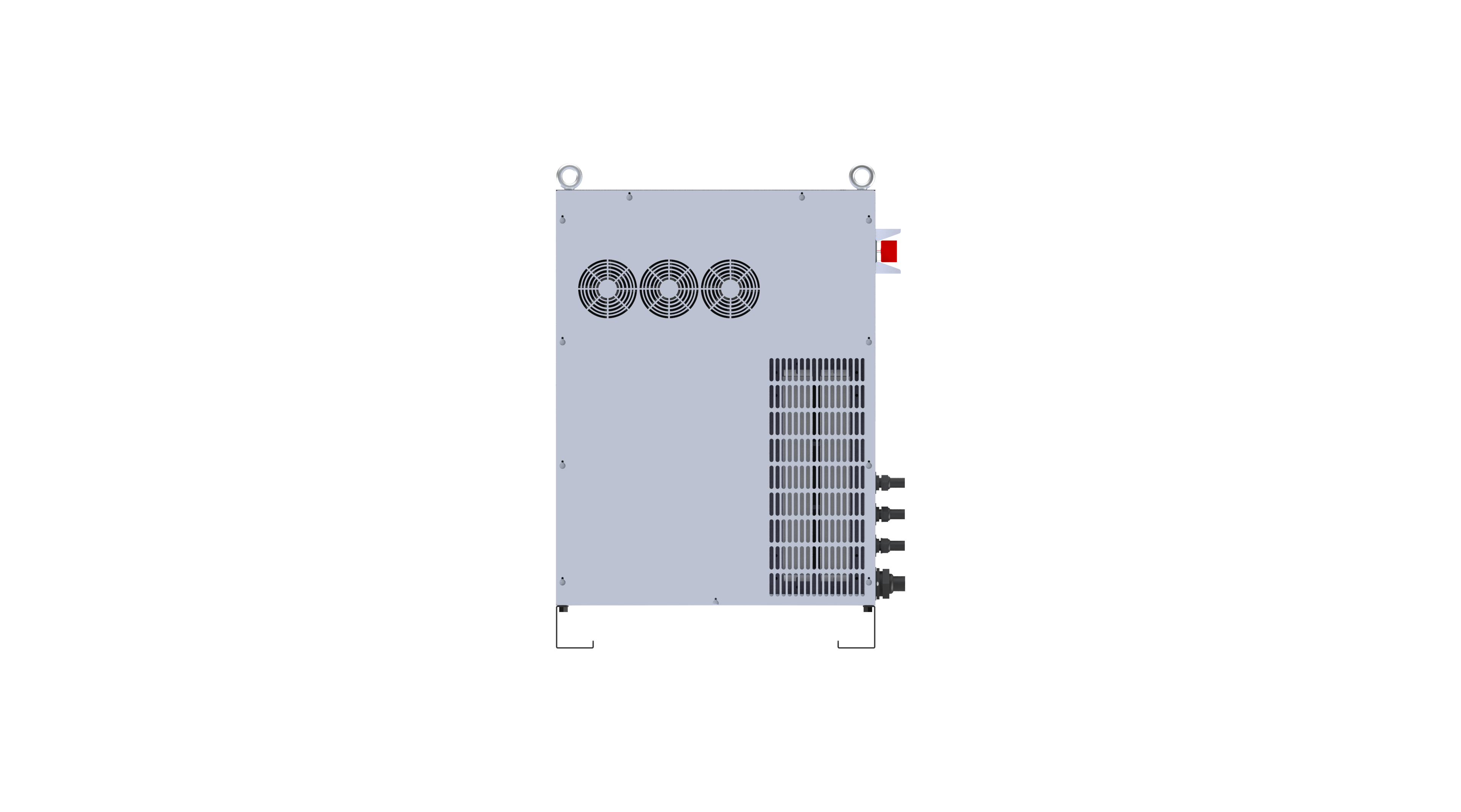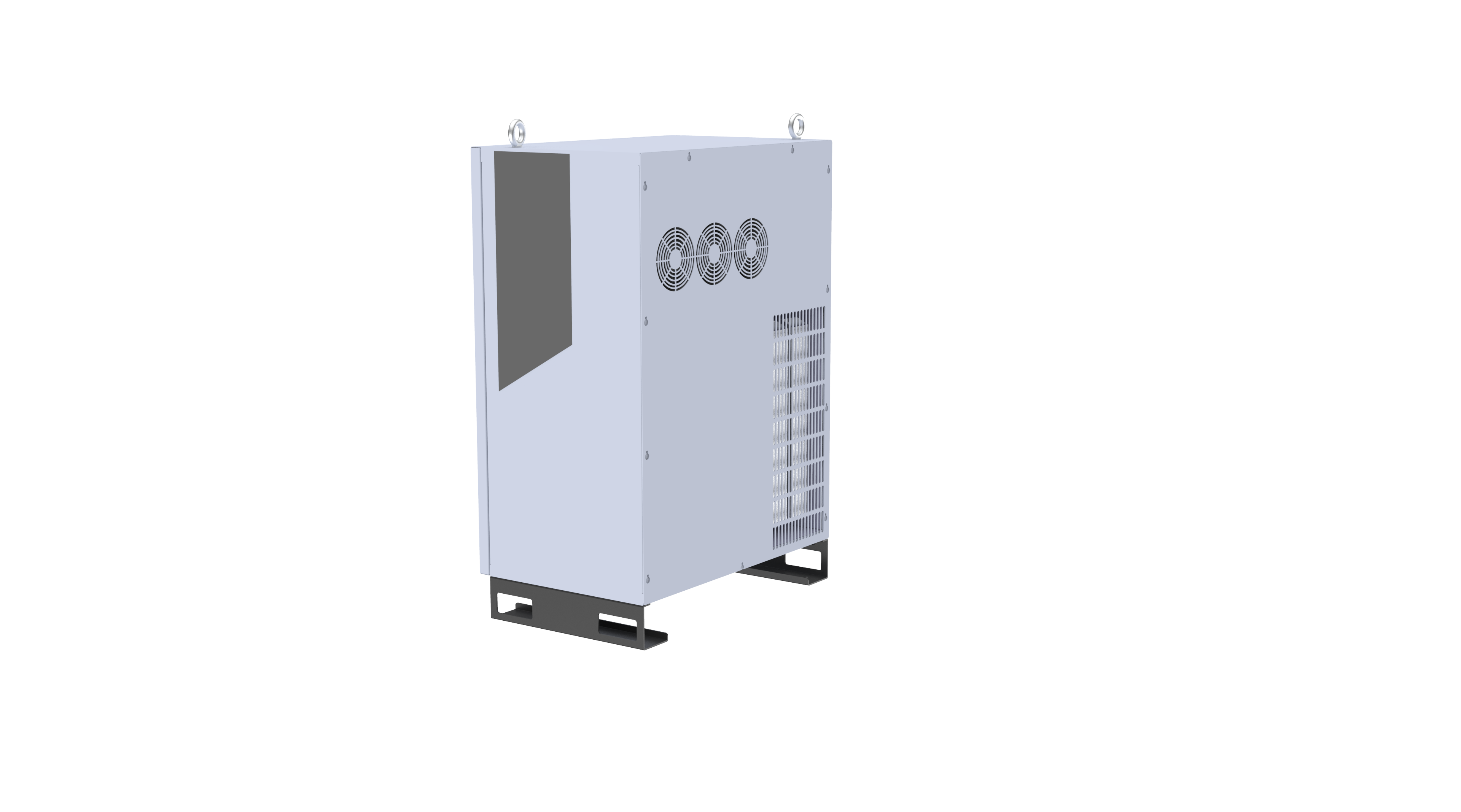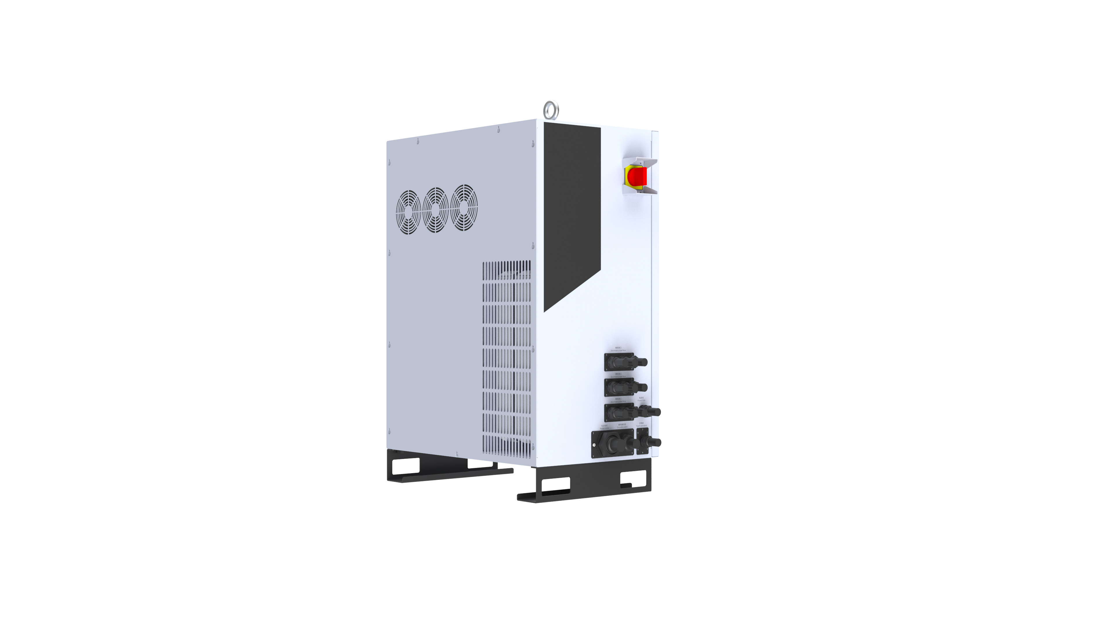 分为电源室和控制室。电源室主要集中发热器件,采⽤多组⻛扇+⻛道设计,保障发热器件良好散热。控制室与电源室隔离,避免粉尘,油污进⼊控制室,保障控制室清洁,避免制室内器件受到粉尘、油污影响导致⼯作异常。