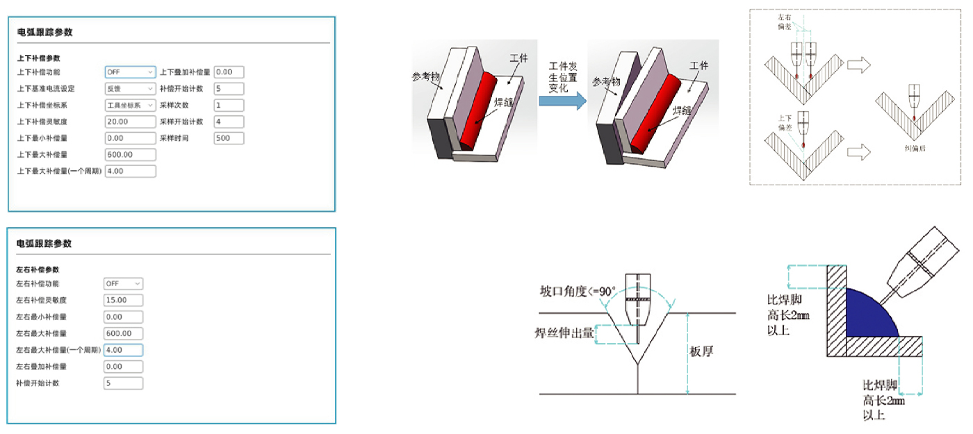 系统根据电流幅值判断当前焊缝与预设电流的差值,判断其上下左右的偏移值。