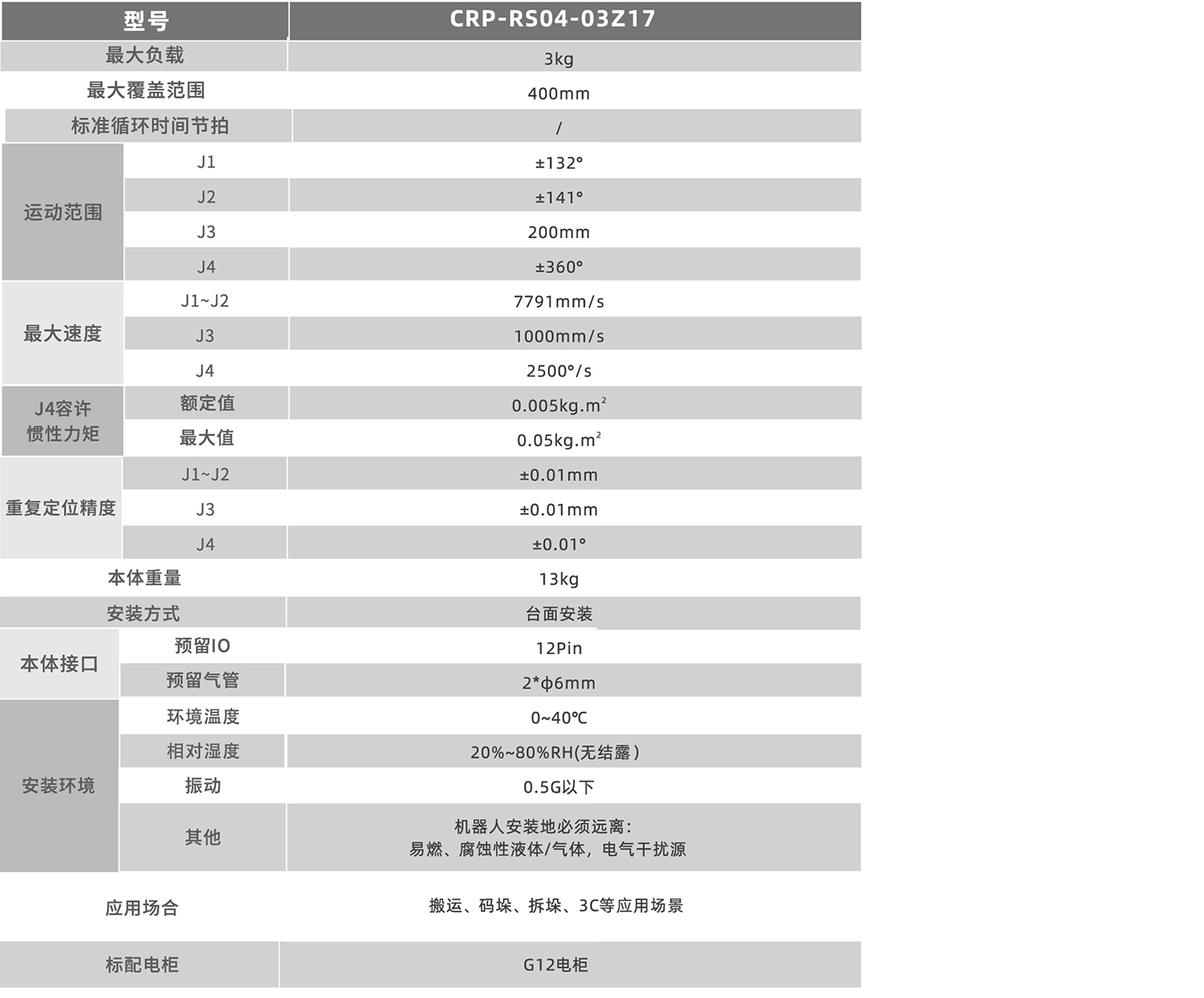 适⽤于搬运、码垛、装配、3C等多种应⽤场合。