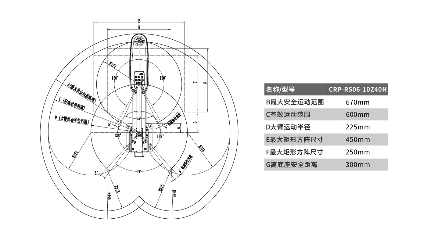 提供600毫⽶臂⻓规格,最⾼有效负载可达10kg,额定有效负载为5kg。