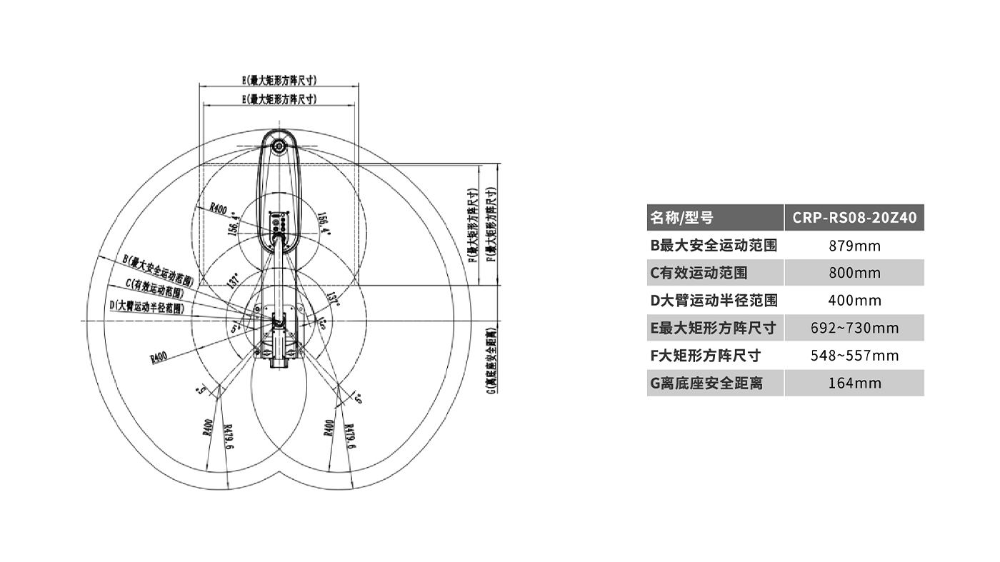 可提供800毫⽶臂⻓规格,最⾼有效负载可达20kg,额定有效负载为10kg。